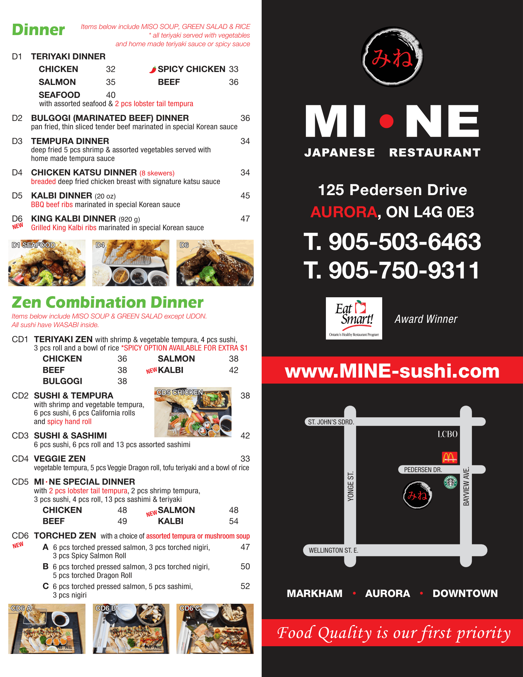 AURORA DINNER MENU