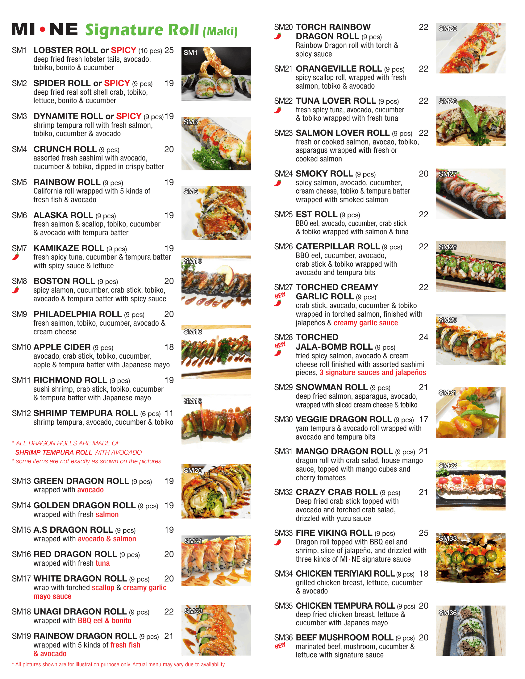 Sushi restaurant lunch menu with various maki roll options and images of sushi dishes at the bottom.